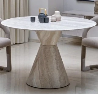 ABBOT okrúhly jedálenský stôl, svetlý travertín