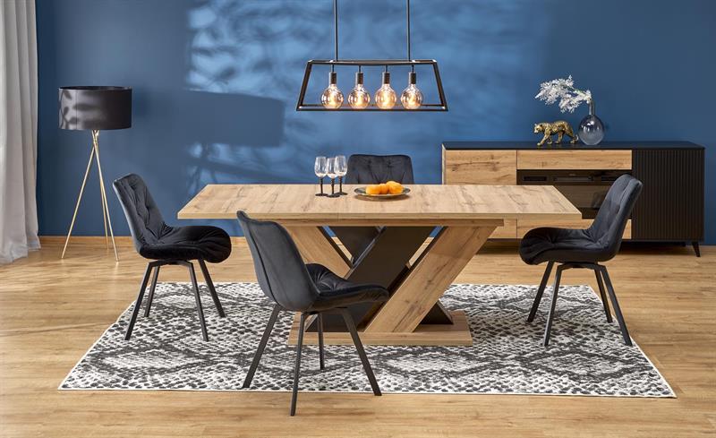 Stôl je vyrobený z laminovanej drevotriesky, čo zabezpečuje jeho odolnosť a jednoduchú údržbu. Tento materiál je známy svojou trvanlivosťou a odolnosťou voči poškodeniu, čím poskytuje ideálne riešenie pre moderné domácnosti. Farba dub wotan v kombinácii s elegantným čiernym odtieňom dodáva stolu nadčasový dizajn, ktorý sa skvele hodí do akéhokoľvek interiéru.