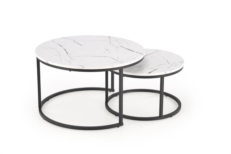 JAVA konferenčný stolík sada 2ks, mramor/oceľ, biela/čierna