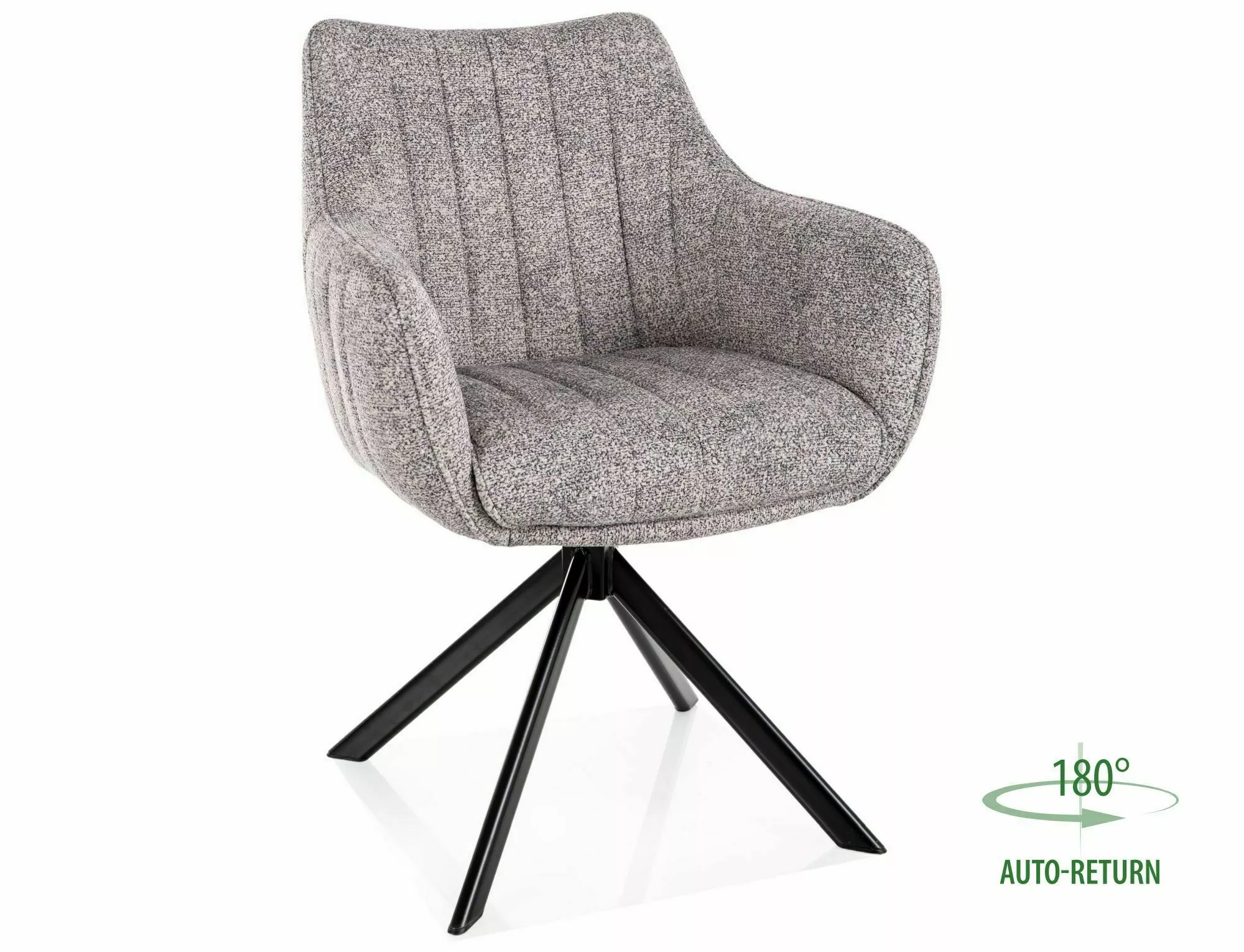 Stolička, čalúnenie: látka Leo, rám: kov, farba: svetlosivá 04 / matná čierna. Funkcia automatického návratu - sedadlo sa otáča o 180 stupňov s funkciou návratu do pôvodnej polohy.