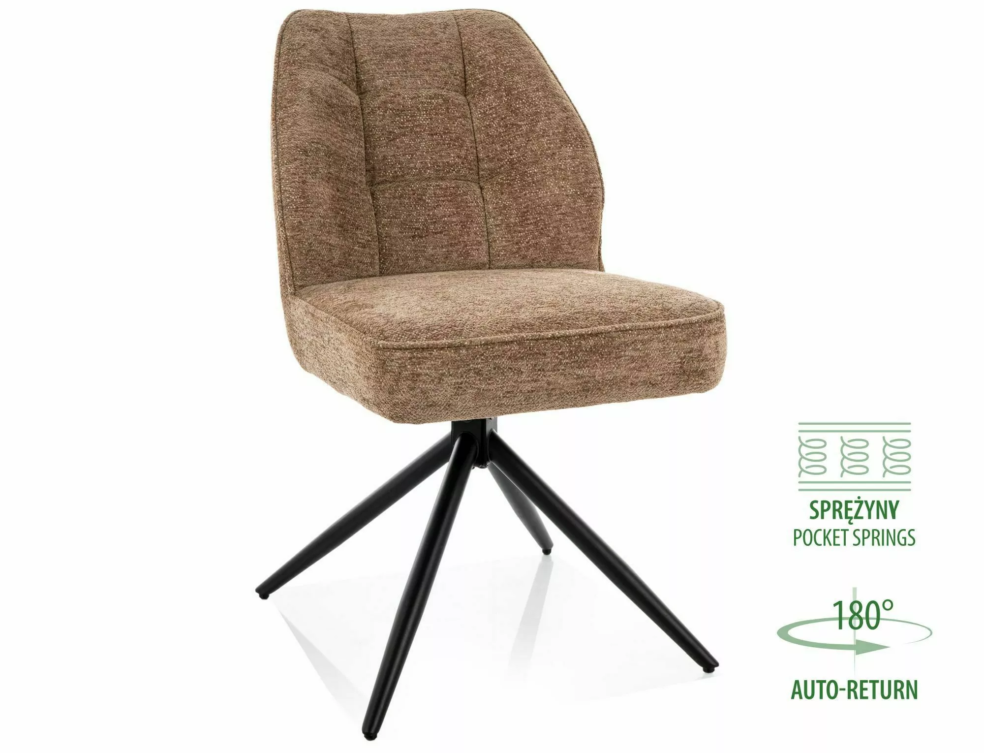 Stolička, čalúnenie: látka Raven, rám: kov, farba: latte 34 / matná čierna. Funkcia automatického návratu - sedadlo sa otáča o 180 stupňov s funkciou návratu do pôvodnej polohy. Sedadlo je vybavené taštičkovými pružinami.