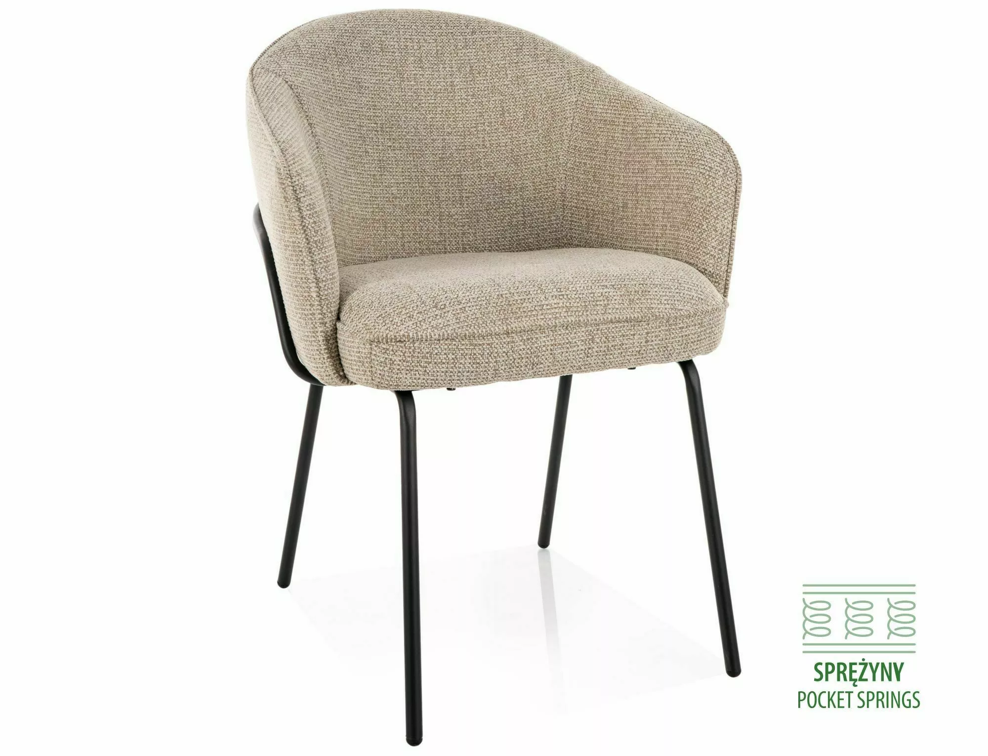 Stolička, čalúnenie: látka Noelle, rám: kov, farba: béžová 30 / matná čierna. Sedadlo je vybavené pružinami v taštičkách.