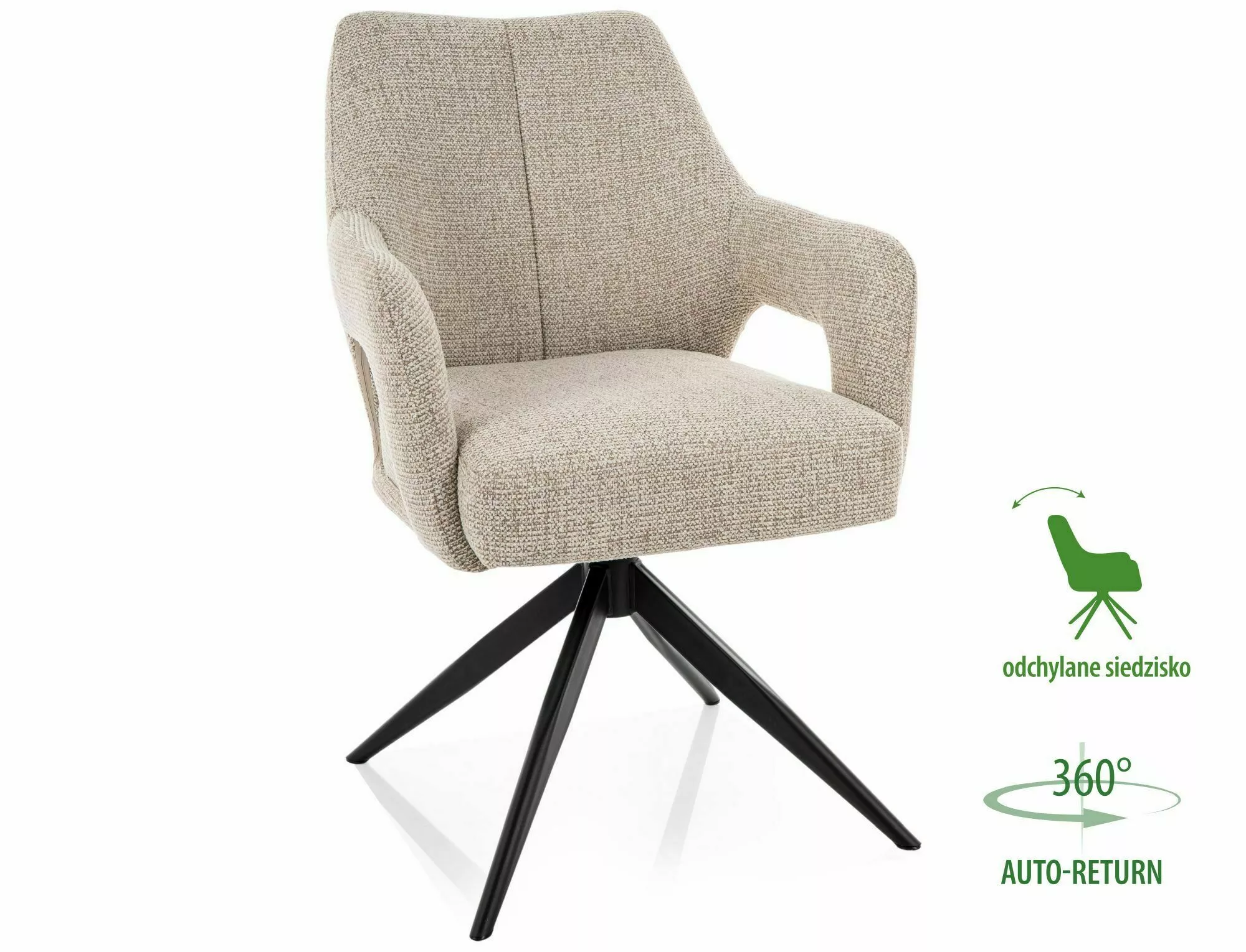 Stolička, čalúnenie: látka Noelle, rám: kov, farba: béžová 30 / matná čierna. Funkcia automatického návratu - sedadlo sa otáča o 360 stupňov s funkciou návratu do pôvodnej polohy, funkcia nakláňania sedadla.