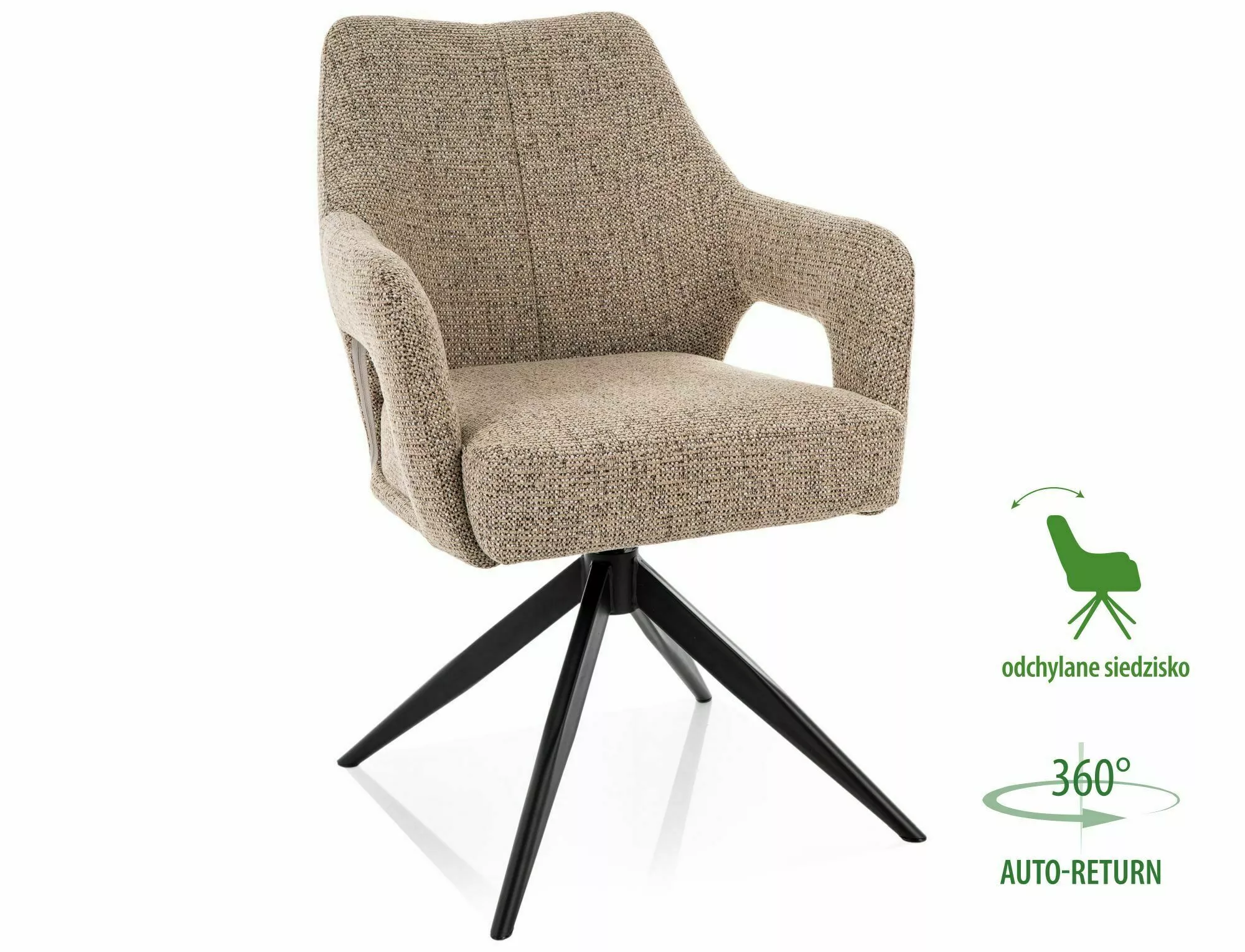 Stolička, čalúnenie: látka Noelle, rám: kov, farba: tmavobéžová 33 / matná čierna. Funkcia automatického návratu - sedadlo sa otáča o 360 stupňov s funkciou návratu do pôvodnej polohy, funkcia nakláňania sedadla.