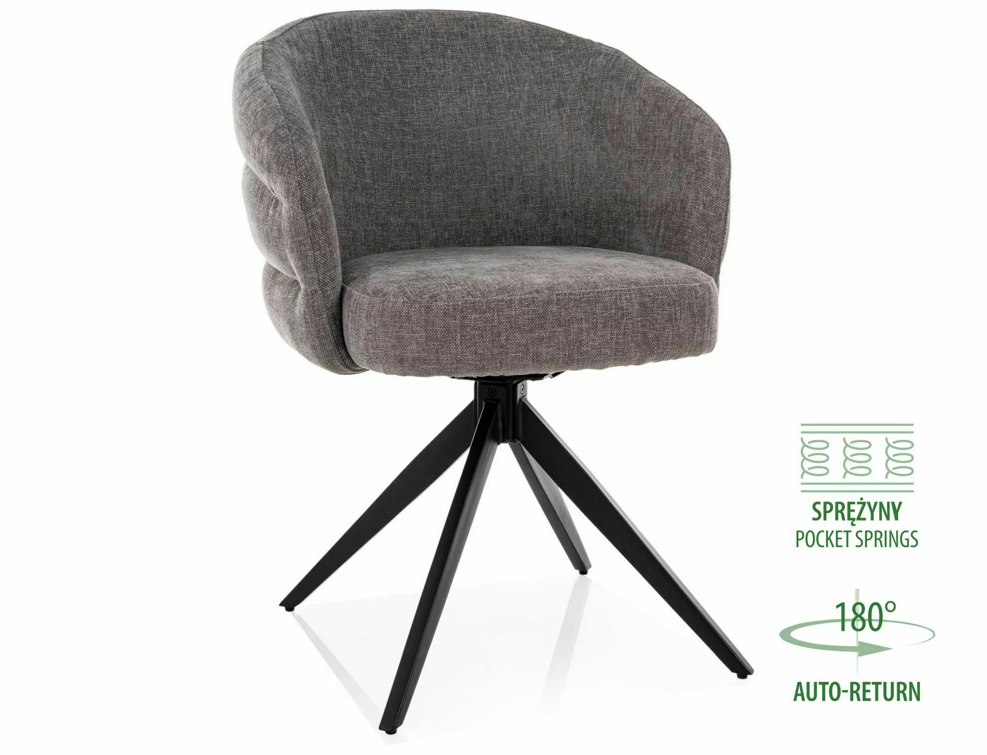 Stolička, čalúnenie: látka, rám: kov, farba: 252 sivá/matné čierne čalúnenie. Funkcia automatického návratu - sedadlo sa otáča o 180 stupňov s funkciou návratu do pôvodnej polohy. Sedadlo je vybavené taštičkovými pružinami.
