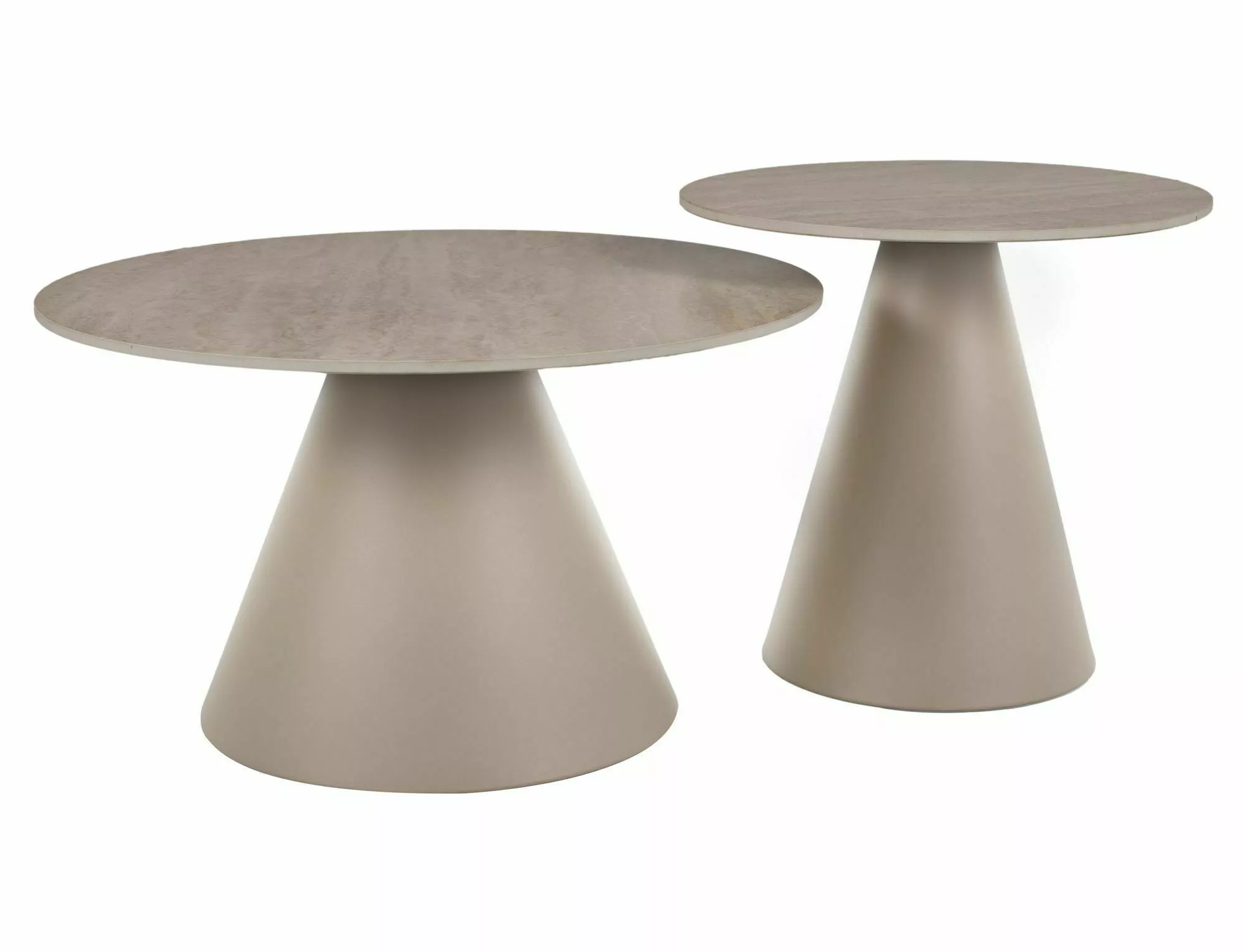 Set konferenčných stolíkov, vrchná doska: travertínová keramika, rám: kov, farba: béžová / kašmír.