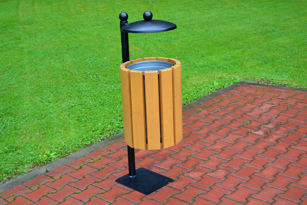 Odpadkový kôš GRAND je okrúhly odpadkový kôš na stĺpiku so strieškou. Oceľová konštrukcia koša je v základnej verzii pozinkovaná a práškovo lakovaná v matnej čiernej farbe. Na prianie zákazníka vieme vyrobiť oceľový podstavec v inej farbe vybranej z palety RAL. Oceľ, ktorú používame na výrobu nášho nábytku, je vždy pred lakovaním pozinkovaná. Galvanizácia je osvedčený spôsob ochrany ocele podliehajúcej korózii. Pozinkovaný prvok je oveľa odolnejší voči korózii ako čistá oceľ.