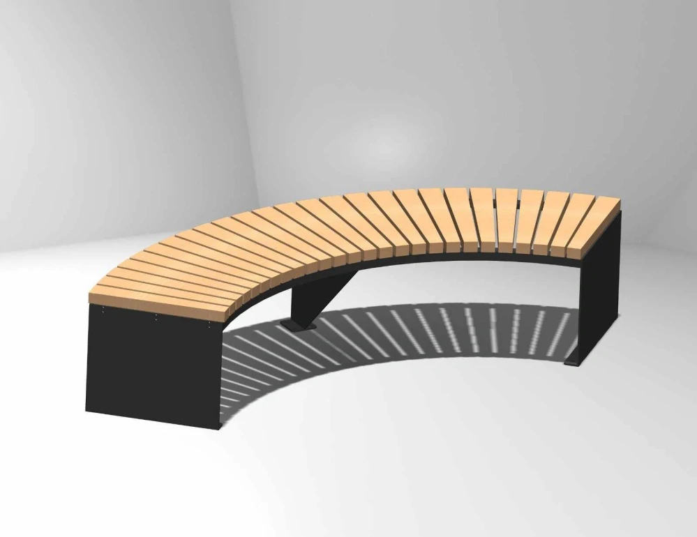 Oblúková lavička bez operadla je moderný a minimalistický prvok mestského a parkového mobiliáru, navrhnutý na vytváranie kruhových alebo polkruhových zostáv. Vďaka svojmu tvaru je ideálna na oddýchové zóny, okolie stromov, námestia, parky, sídliská a verejné priestory, kde podporuje komunitné sedenie a prirodzenú interakciu ľudí.