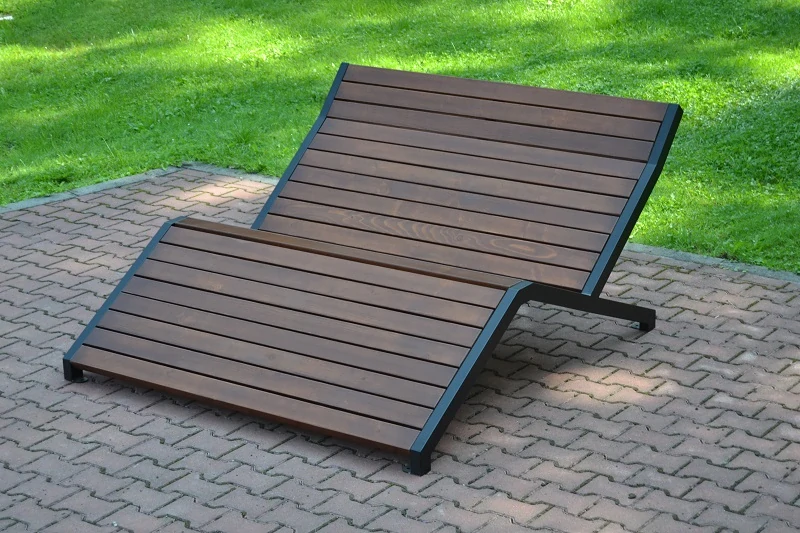 Vonkajší oceľovo-drevený ležak L008 – moderné mestské ležadlo