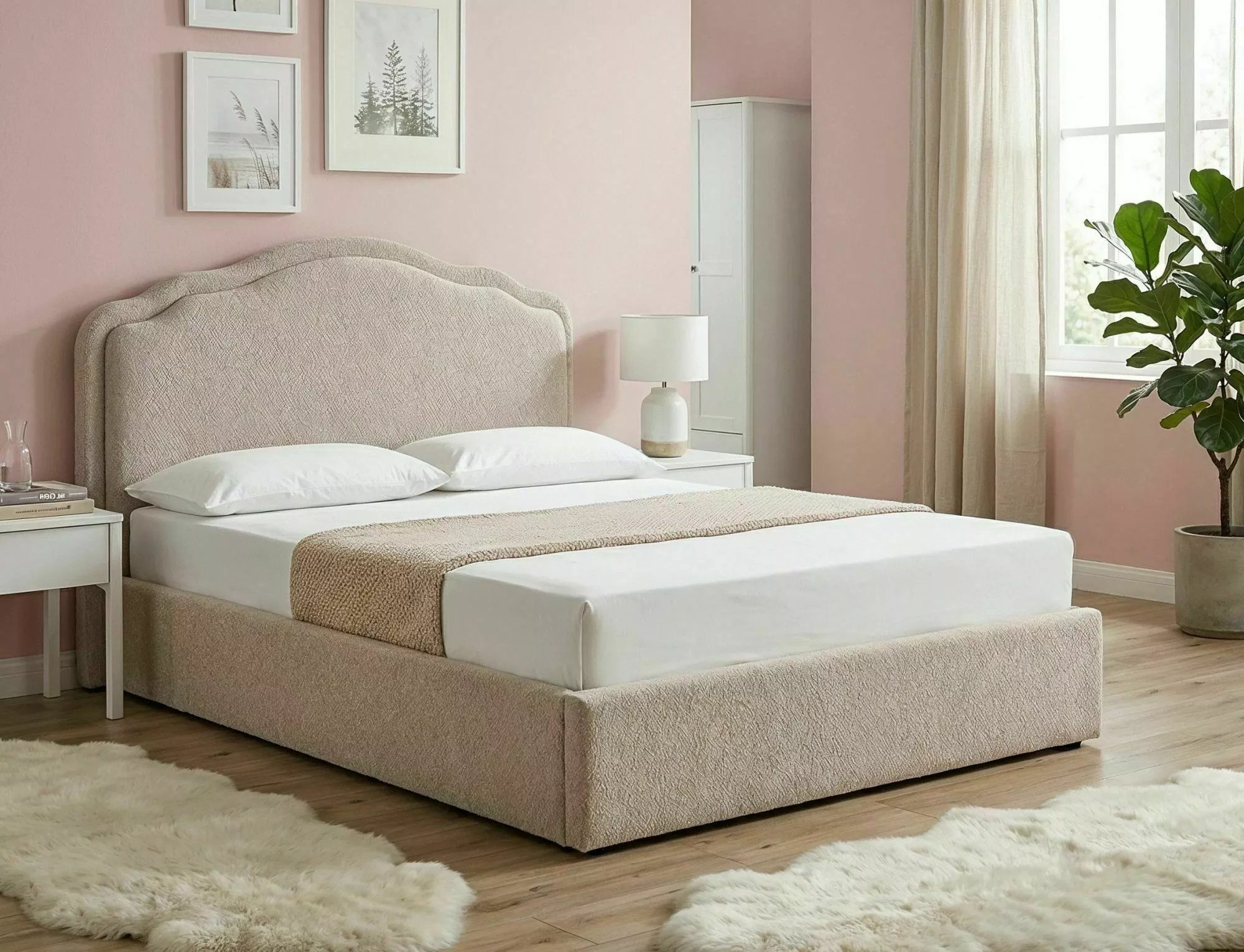 Posteľ s úložným priestorom, látka Raven, farba: 24 béžová. Piest, zdvíhanie z boku (ľavá alebo pravá strana na výber pri montáži);