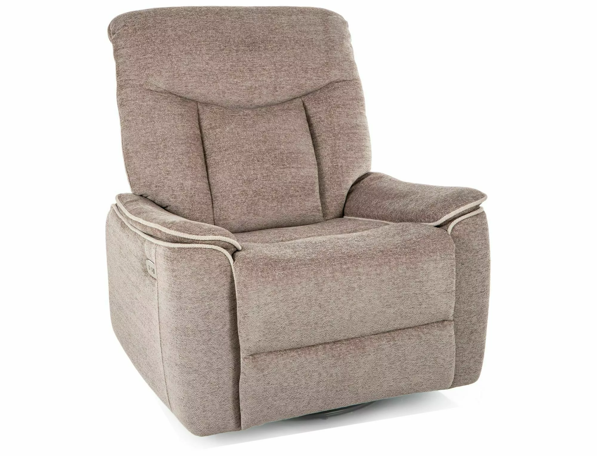 Elektricky polohovateľné kreslo s funkciou kolísky, látka: Raven, farba: tmavobéžová 30. Sedadlo otočné o 360 stupňov, funkcia kolísky funguje v zloženej polohe, USB port. Rozmery kresla: A - 106, B - 92, C - 50, D - 52, E - 92 po zdvyhnutí nôh 168 cm.