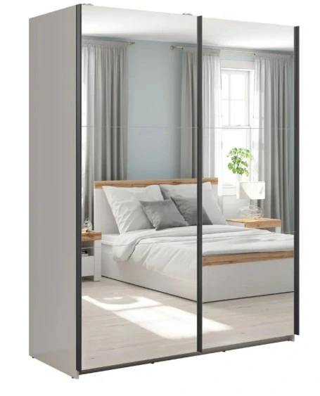 Dvoje zrkadlové dvere Posuvný systém šetrí miesto pred skriňou a zrkadlá na oboch krídlach dverí dokonale presvetlia spálňu či predsieň.