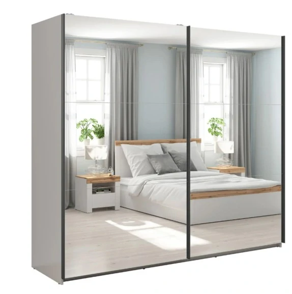 Dvoje posuvné dvere: Šetria priestor v miestnosti, pričom jedno krídlo je vybavené veľkým zrkadlom, ktoré opticky presvetlí a zväčší váš interiér.